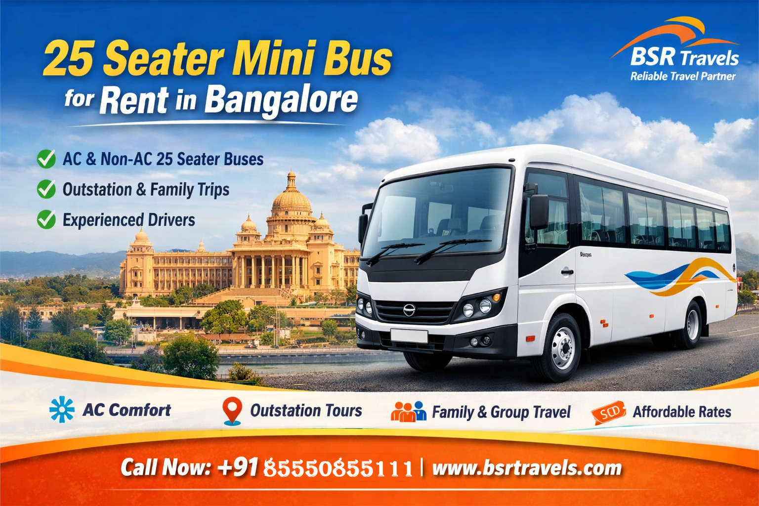 25 Seater Mini Bus for Rent in Bangalore – Comfortable & Affordable Travel with BSR Travels